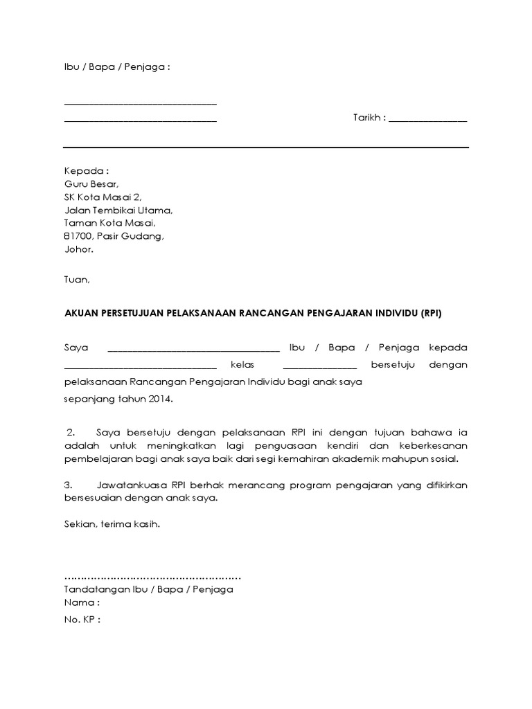 Contoh Surat Kebenaran Ibu Bapa Untuk Lawatan Kumpulan Contoh Terbaru